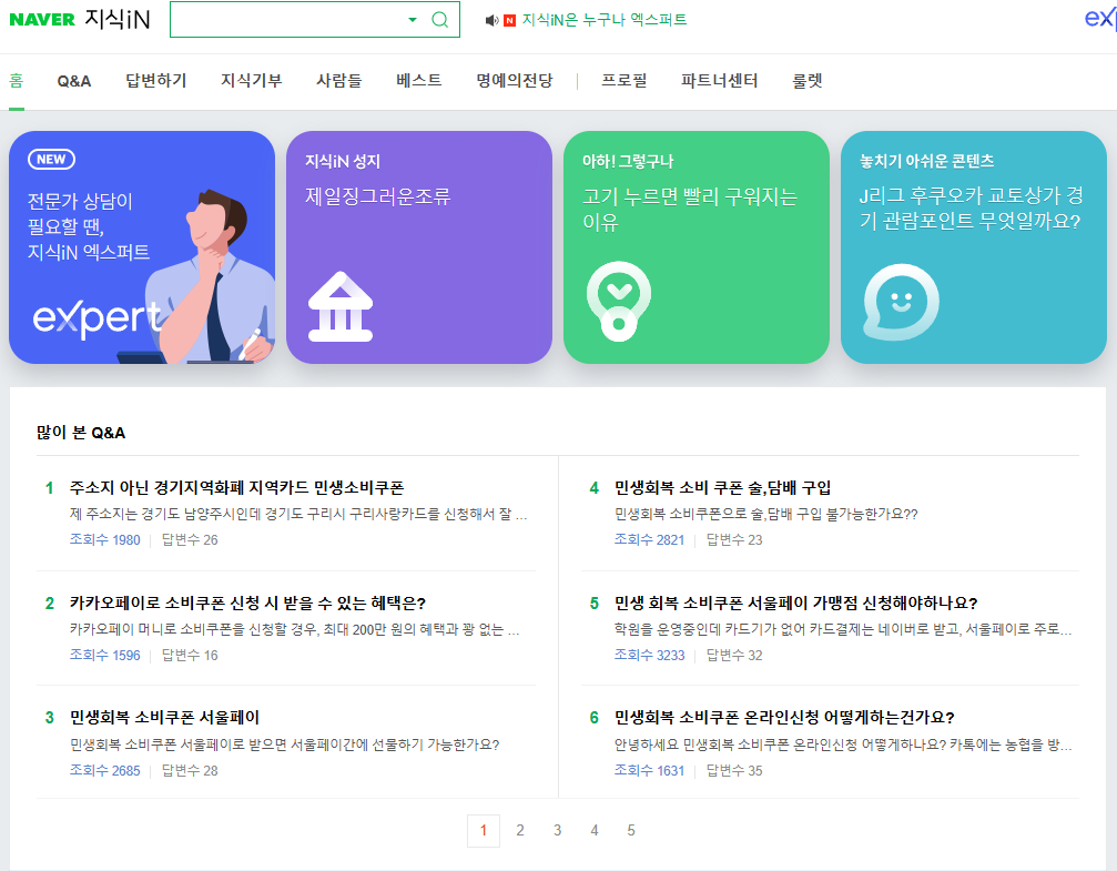 네이버 지식인 메인에서 ‘많이 본 Q&A’ 메뉴를 눌러보세요.