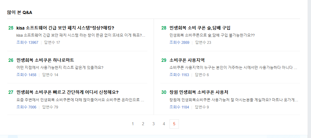 - ‘많이 본 Q&A’에서 실시간 인기 키워드 확인