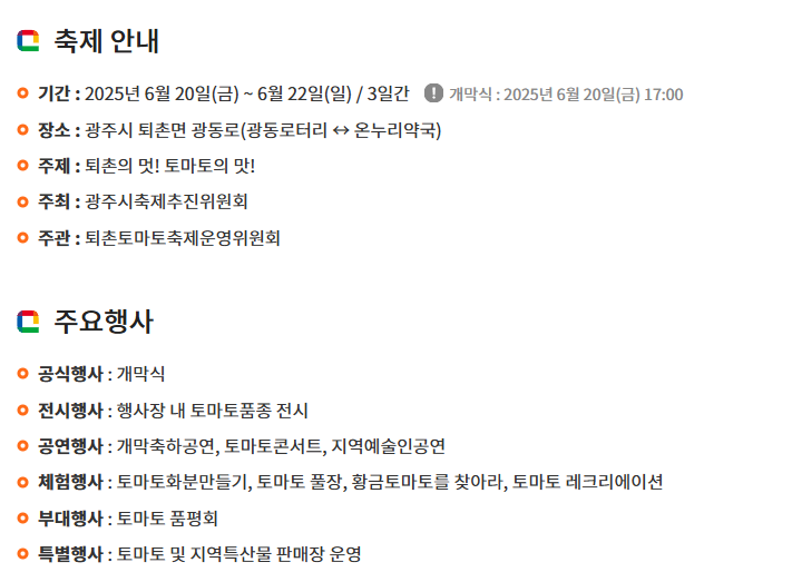 2025년 6월 20일부터 22일까지 열리는 퇴촌 토마토 축제! 황금토마토 이벤트, 공연, 체험, 교통편, 주차 정보까지 한눈에 알아보세요.