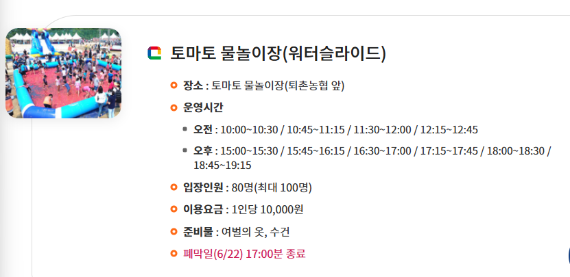 - 축제명: 제23회 퇴촌 토마토 거리축제