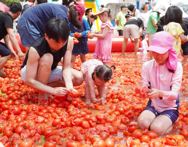 축제에서 가장 큰 인기를 끄는 '토마토 풀장 이벤트'는 대형 풀장에 토마토를 가득 채워 숨겨진 황금토마토(상품칩)를 찾는 프로그램입니다.
